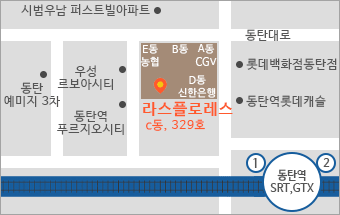 | SRT | 동탄역 하차 ▶ 1번출구 ▶ 신한은행 방향 ▶ 7분가량 도보 ▶ 라스플로레스 C동 3층 329호, 하이맨 비뇨기과 |